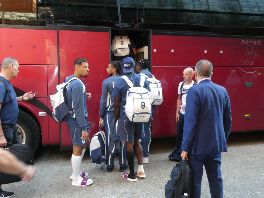 DIRECTION LE BUS POUR PRENDRE LA ROUTE VERS BRON AVEC THIERRY HENRY ET GUILLAUME RESTES.