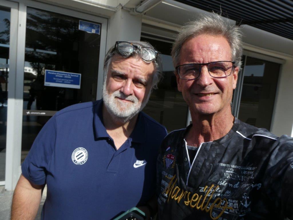 Arrivée des Montpelliérains, la veille de la rencontre pour la traditionnelle mise au vert.